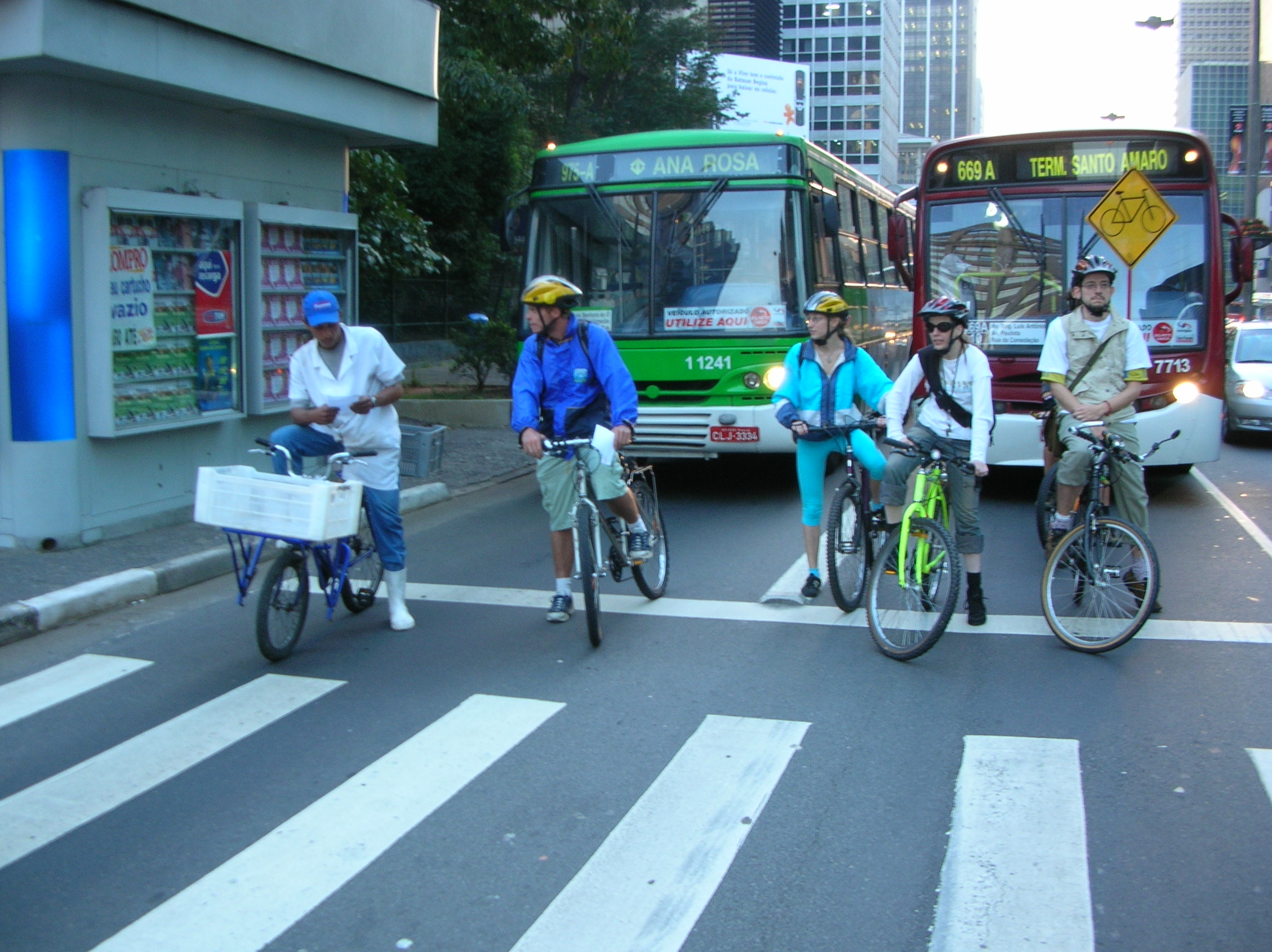 Depois da matéria, resolvemos fazer uma Bicicletada “de verdade” pela av. Paulista. Conseguimos a adesão de mais alguns ciclistas, panfletamos, conversamos e celebramos o nosso meio de transporte não-poluente.