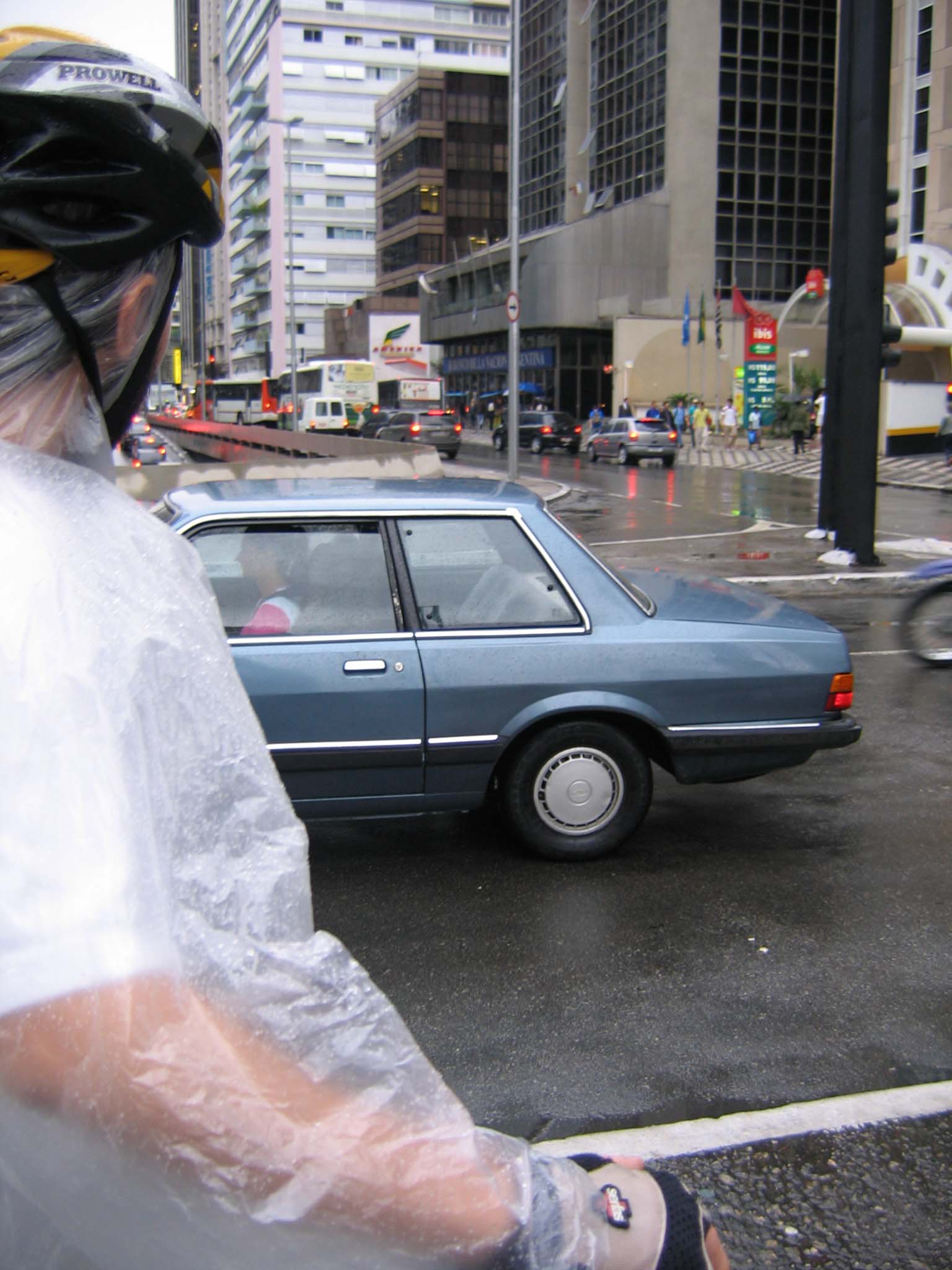 Não foi propriamente uma bicicletada. Ciclistas com capas de chuva e sacos plásticos nos pés se encontraram na última sexta-feira para a 38a edição da ciclo-passeata paulistana. Mais uma sexta-feira chuvosa. São Paulo tem esse mal: passa a semana inteira com um baita sol e na sexta-feira o tempo vira.