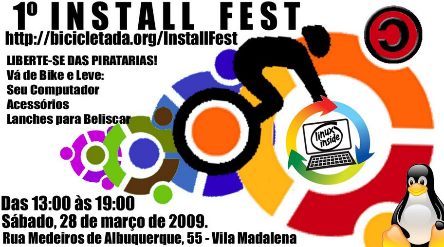 Sábado a jornada é dupla: a partir das 13h, o primeiro “ciclo-install fest” da capital: festival de instalação colaborativa de software livre. Leve o seu computador, seus conhecimentos e sua vontade de se libertar do CTRL+ALT+DEL. Veja mais detalhes aqui.
