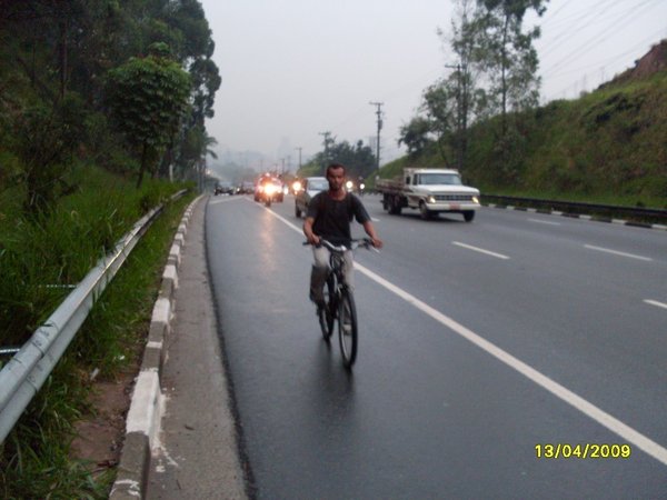 Ok, o acostamento de uma via expressa não é o melhor local para o fluxo de pessoas e bicicletas (ainda que esse direito seja garantido pelo Código de Trânsito em vias sem calçadas ou ciclovias). Certamente a melhor solução seria a construção de calçadas e de pistas dedicadas ao fluxo de ciclistas.