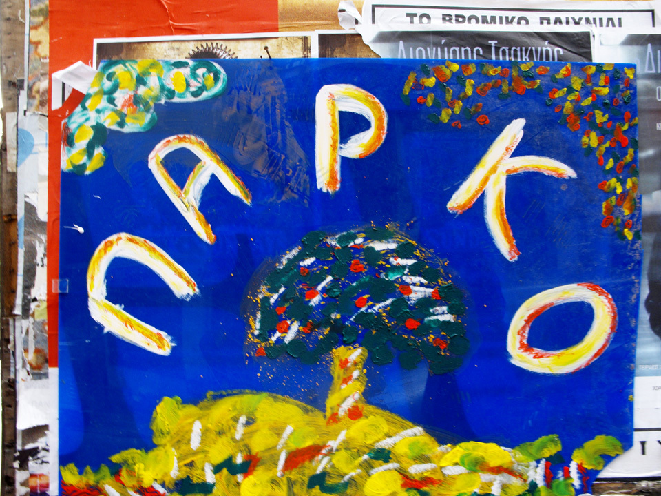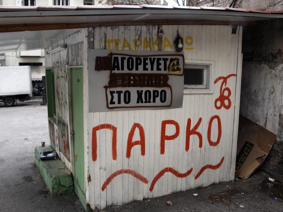 Em Março deste ano, a população de Exarchia, uma vizinhança central de Atenas, ocupou um terreno que funcionava como estacionamento, despavimentou o asfalto, plantou árvores, criou um parque público e celebrou o novo espaço com oficinas, dança, festa e música e vinho. Encerraram o dia com um concerto e passaram a exigir que o novo parque seja oficializado.