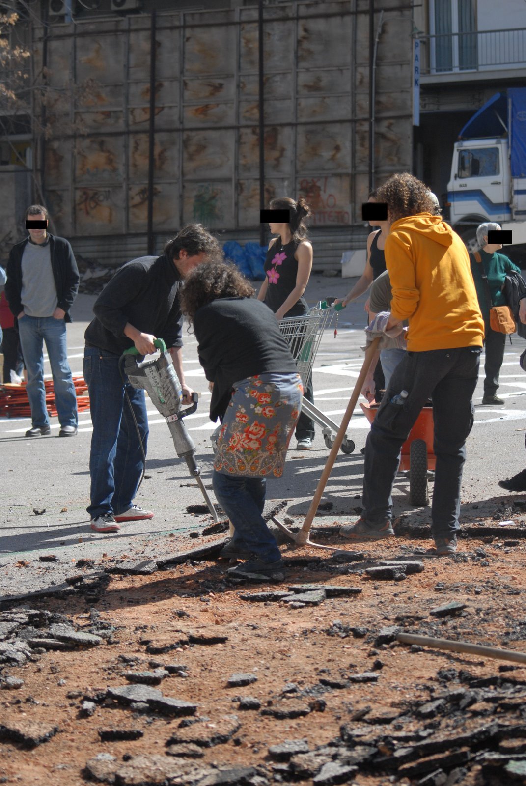 Imagens da despavimentação em Exarchia 1