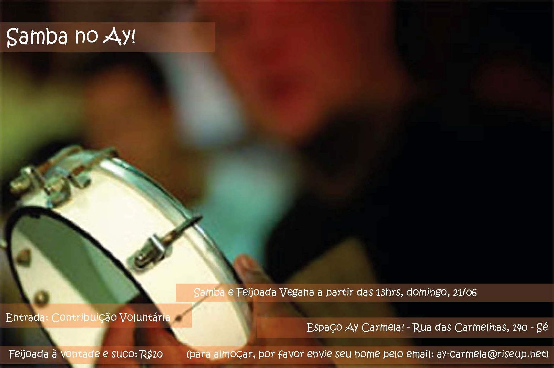 Também no domingo, feijoada com samba a partir das 13h no Espaço Ay Carmela! , que fica na rua das Carmleitas, 140.