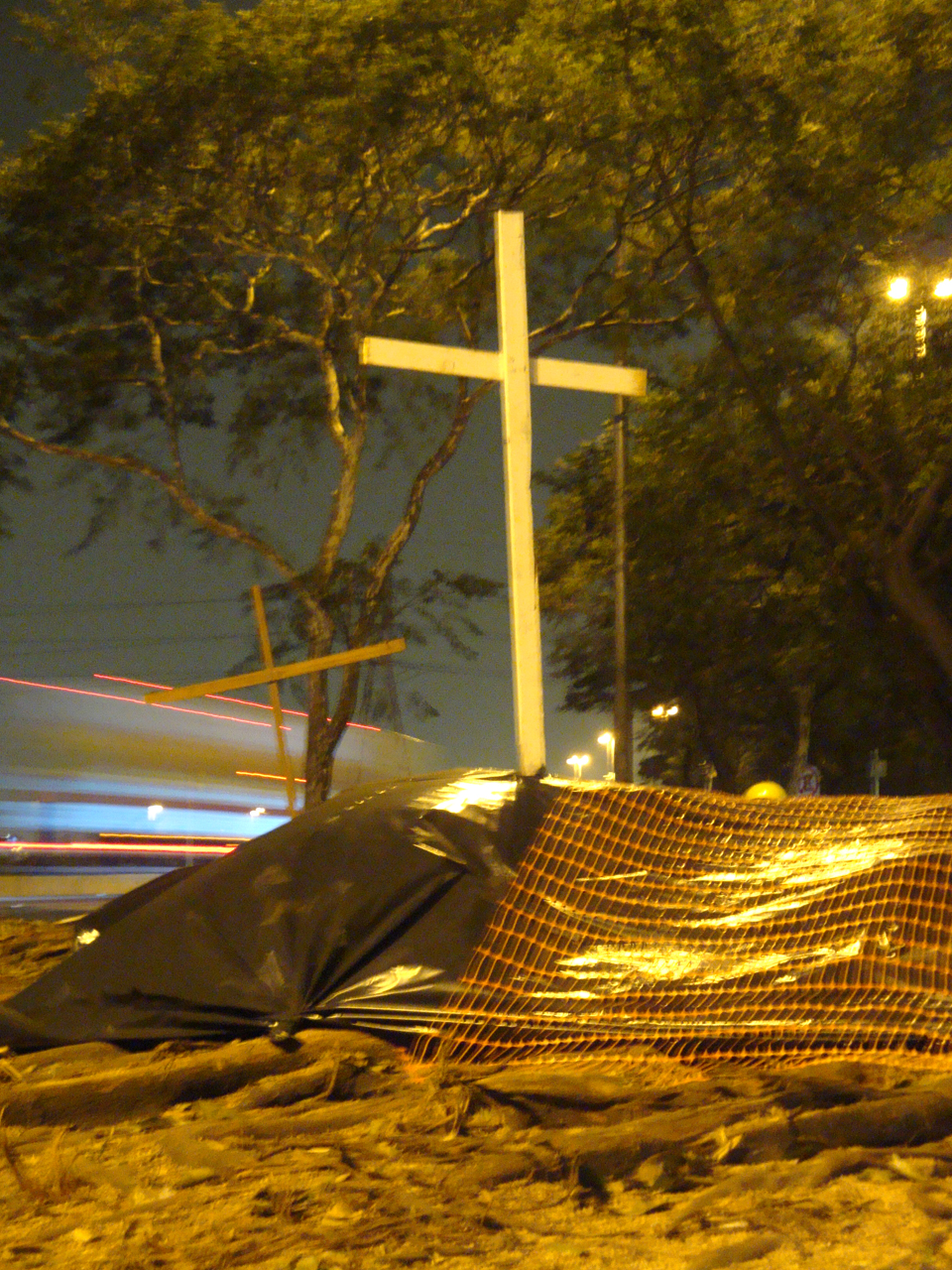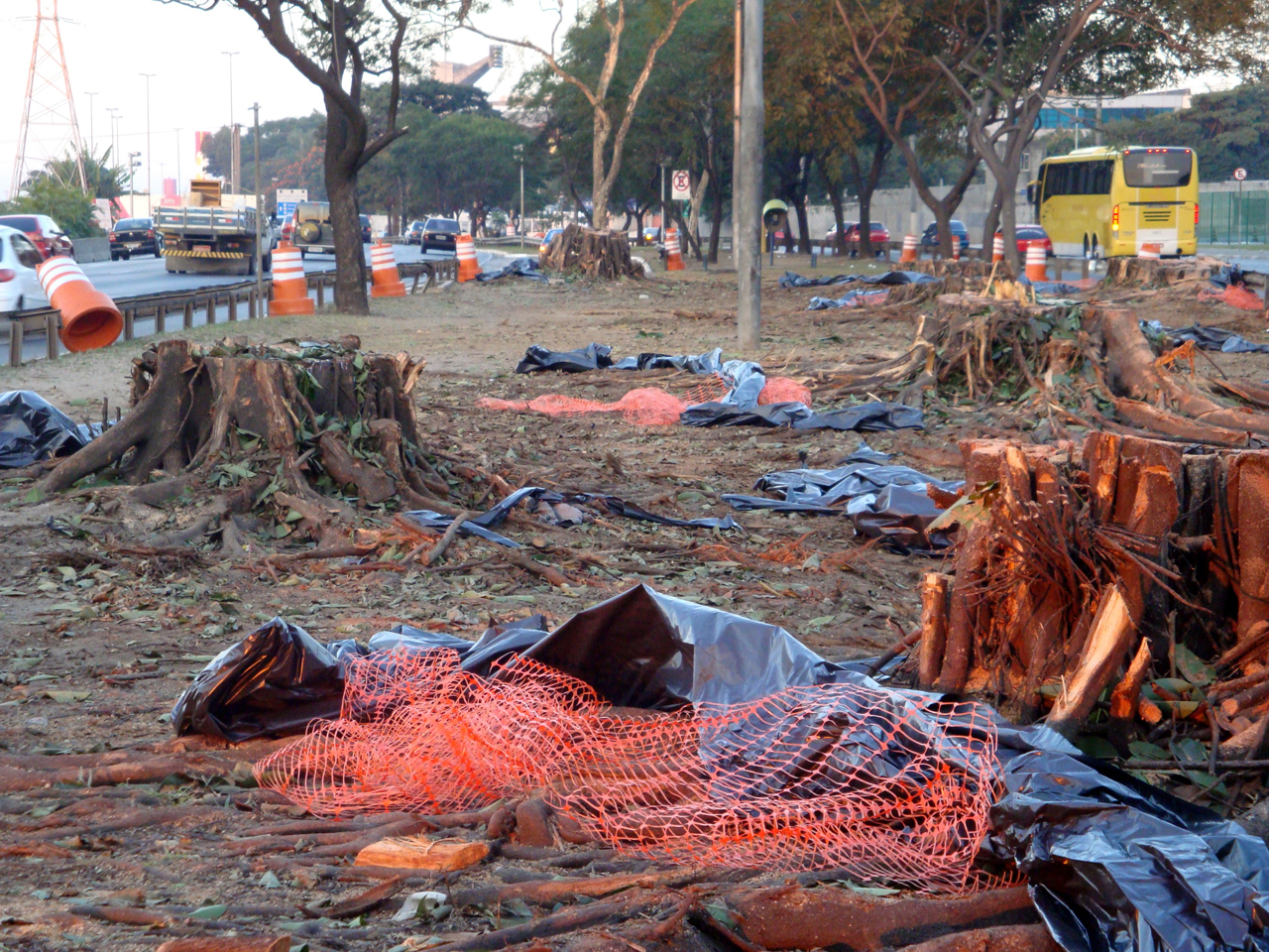 Sem bicicleta, a maneira mais fácil é ir de metrô até a estação Tietê e atravessar a ponte Cruzeiro do Sul. O canteiro com as raízes das árvores grandes (ou sacos pretos) estará bem à sua frente. Em direção à ponte das Bandeiras, a área ainda guarda árvores menores.