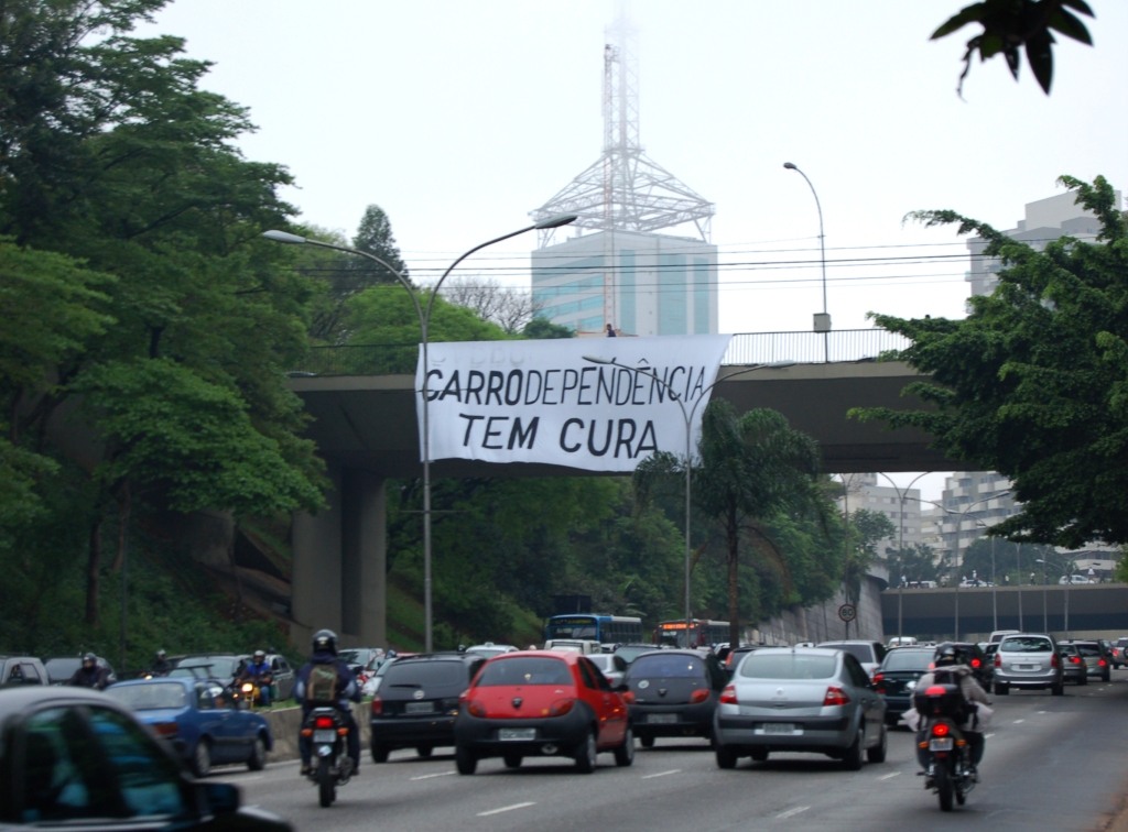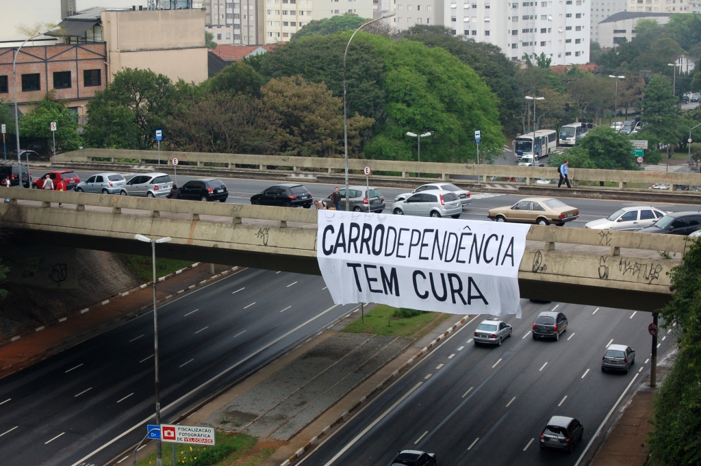 Na manhã do Dia Sem Carro, faixas espalhadas pela cidade de São Paulo lembravam que as patologias do uso excessivo de automóveis atingem outros órgãos além do pulmão, mas que existe tratamento. No espaço urbano, a infecção se alastra com rapidez, ganhando força com maus hábitos alimentares como a Redução do IPI, a pavimentação de várzeas com finalidade eleitoral ou a total negligência com os modos de circulação ditos “alternativos”.