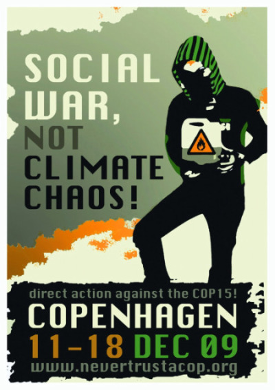 A catástrofe é real e a mudança climática é um dos seus vários sintomas. O slogan inevitável da COP 15, “evitar a crise climática global”, é um elaborado embuste para ocultar o verdadeiro propósito da reunião de cúpula: restaurar a legitimidade do capitalismo global, através da instituição da era do capitalismo “verde”. A nova retórica do “para evitar a mudança climática” justificará a repressão, as fronteiras fortificadas, as guerras coloniais pelos recursos naturais. É preciso vestir o Imperador com novas roupas. Nossa resposta a esta mentira é um NÃO firme e absoluto.