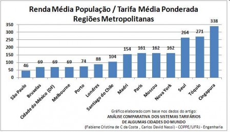 O gráfico identifica claramente o alto custo relativo do transporte coletivo na Região Metropolitana de São Paulo, já que quanto menor o valor obtido maior é o comprometimento da renda no transporte coletivo.