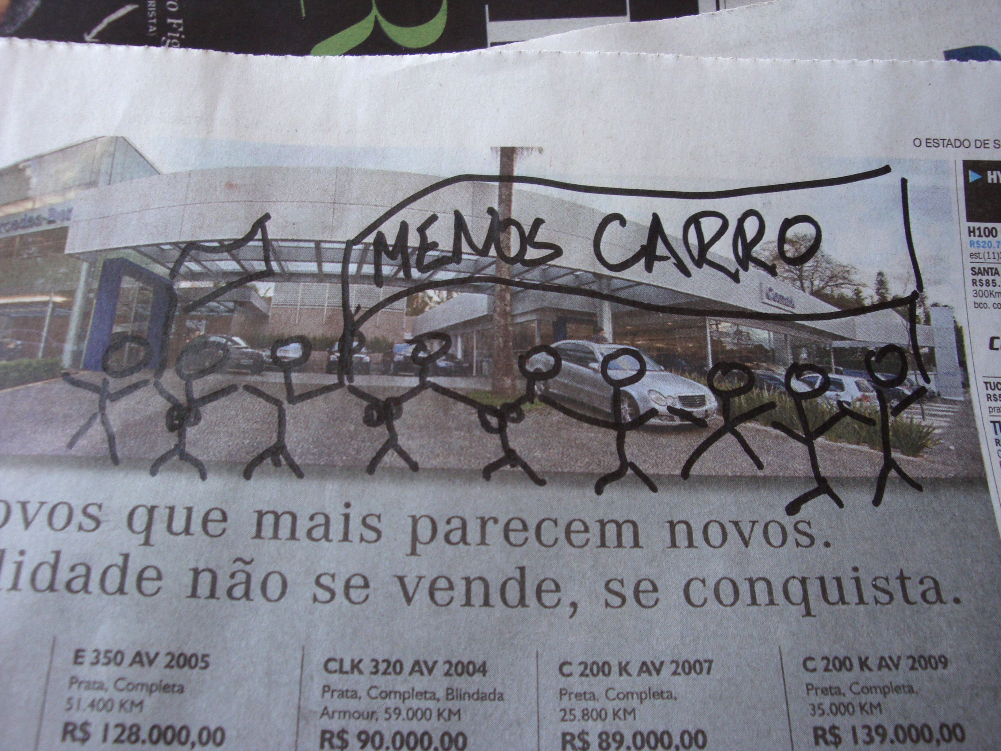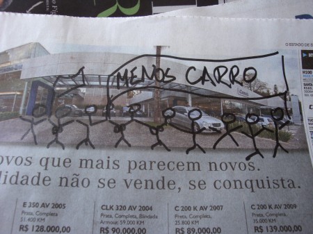 Eu, como o Fábio, também não tenho muitas esperanças quanto a uma solução para esta cidade, porém tento fazer coro ao grito dos desesperados e excluídos sobre duas rodas e tento acreditar que com nosso ato de rebeldia (que é andar de bicicleta) podemos pelo menos melhorar e conseguir o respeito dessas pessoas “ocupadas” com seu trabalho e com o próximo Big Brother.