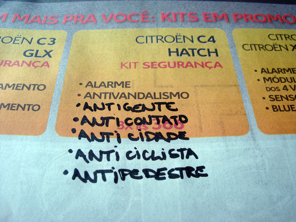 A falta do que fazer, de refletir e de pensar contrói cidadãos como a senhora Patty, revoltada e incomodada com a verdade que saltou aos seus olhos, que constrói frases e atitudes clichês. “O suor de seu trabalho” legitimou a compra do seu status social, e agora ela tem todo o direito de usar as ruas que foram construídas para carrocratas como ela tendo todo o direito de passar por cima de qualquer ciclista que “deveria pedalar pela calçada”.