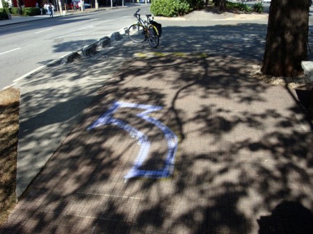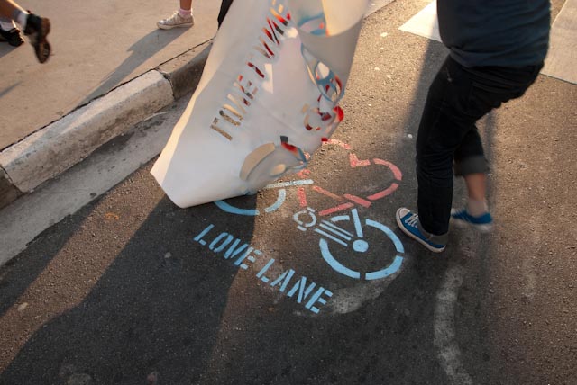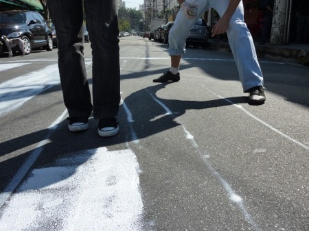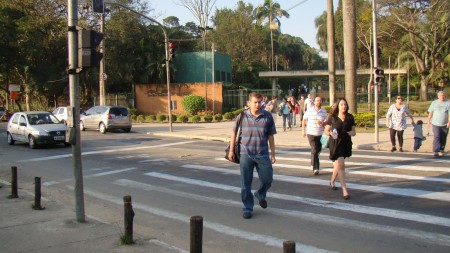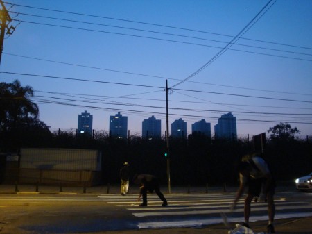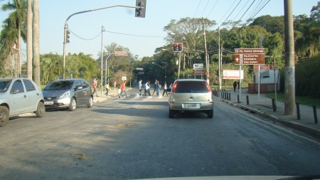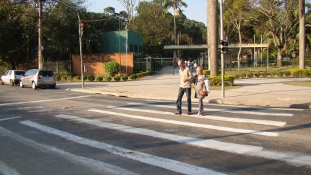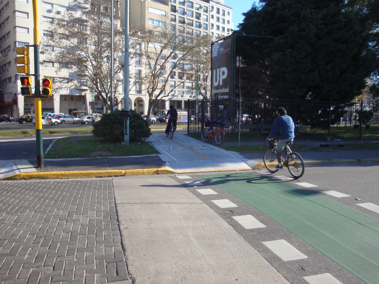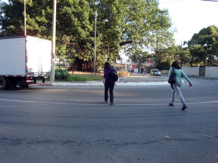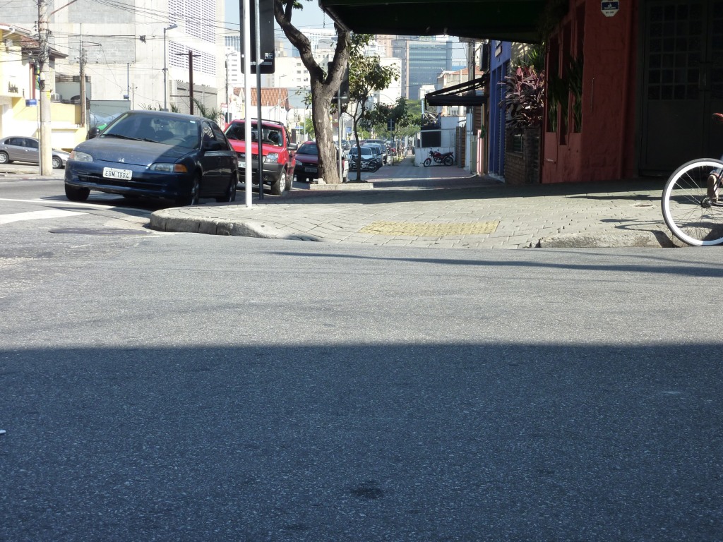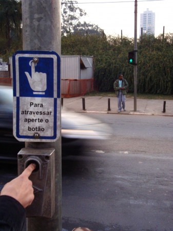 O primeiro clique fracassou: o sinal fica aberto cinco segundos para os ciclistas e três minutos para os carros (lembrança imediata de São Paulo). Quando apertei o botão da câmera, o verde já tinha se tornado vermelho. Mais uma tentativa e finalmente a foto desejada, com a luz verde. Dois ciclos de farol na ciclovia foram suficientes para atrair a atenção dos dois assaltantes e o resto da história está no começo do texto.