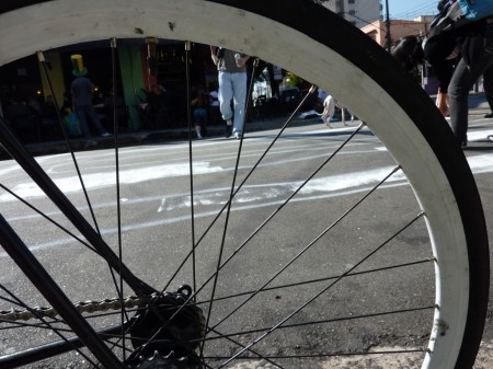O passeio de bicicleta em Buenos Aires durou toda a manhã de sábado. Circulamos em avenidas centrais e ruas transversais da mesma maneira que fazemos em São Paulo: na rua, e não em uma ciclovia. Era sábado, não fomos ameaçados por veículos motorizados em nenhuma parte do trajeto.