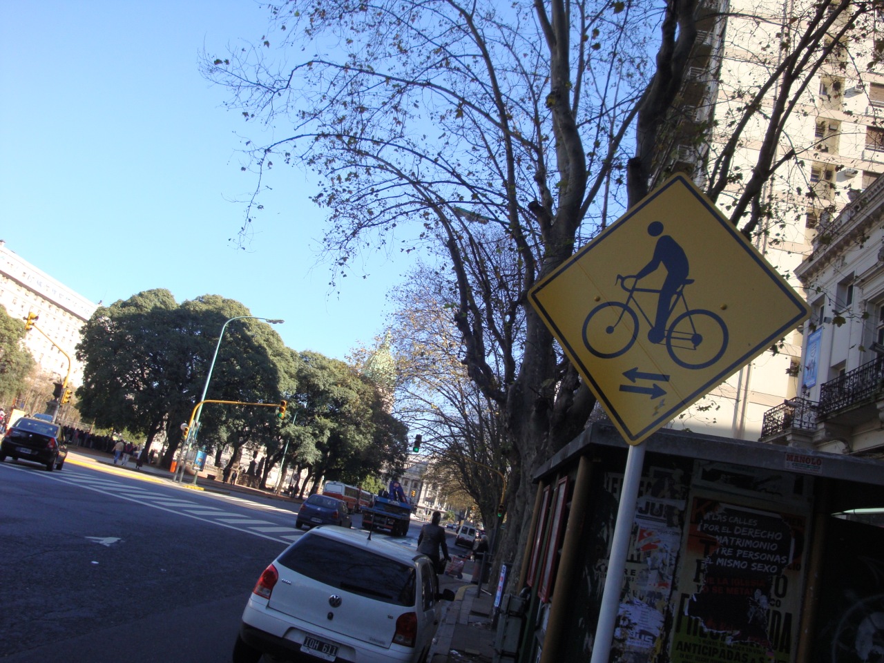 Na Avenida Libertador, uma via com várias pistas de alta velocidade, compartilhamos a pistacom ônibus barulhentos e velozes (lembrança imediata de São Paulo) até chegarmos à ciclovia que nos levaria ao almoço no bairro da Recoleta.